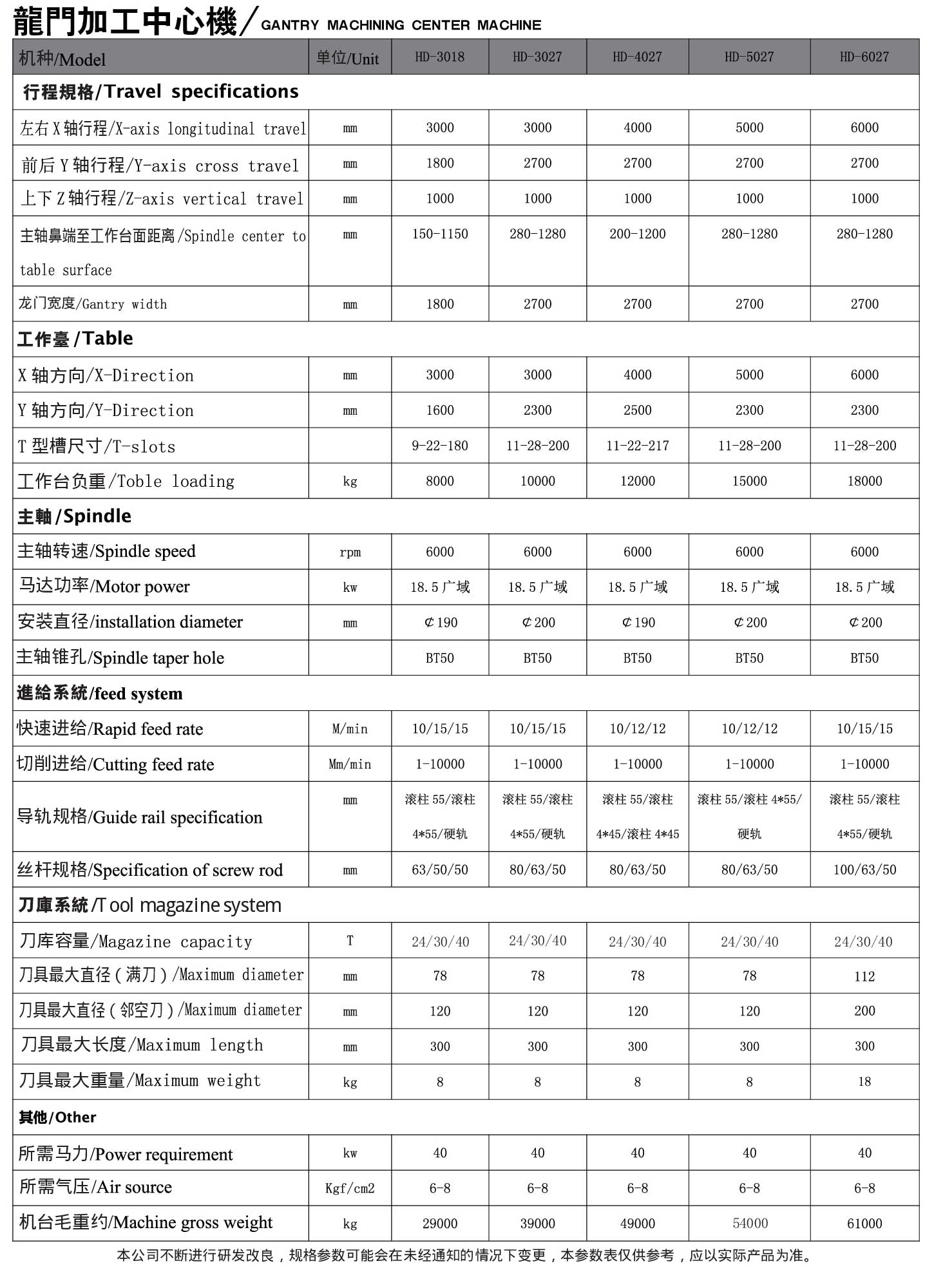 HD系统龙门加工中心为高精密零件加工与模具高速切削之专属设备,具备各项高速加工性能技术指标,为高速加工之利器。