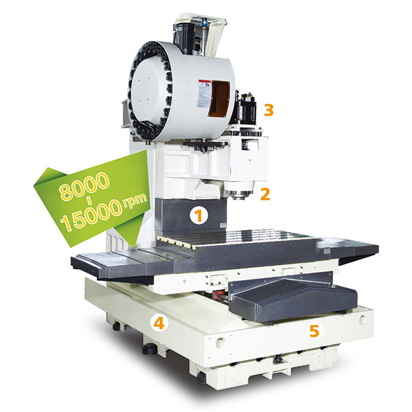 立柱下半部采用A字型大跨距设计,大幅吸收机器在高速加工时产生的震动,不仅加工精度提高,而且工件表面粗糙度也同时降低。
