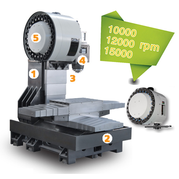 5. Knife arm type tool changing mechanism and fast cutting cylinder For users of mass production processing, the arm type tool changer provides higher processing flexibility and efficiency. Paired with a fast cutting cylinder, the tool change time for knife to knife is only 1.3 seconds.