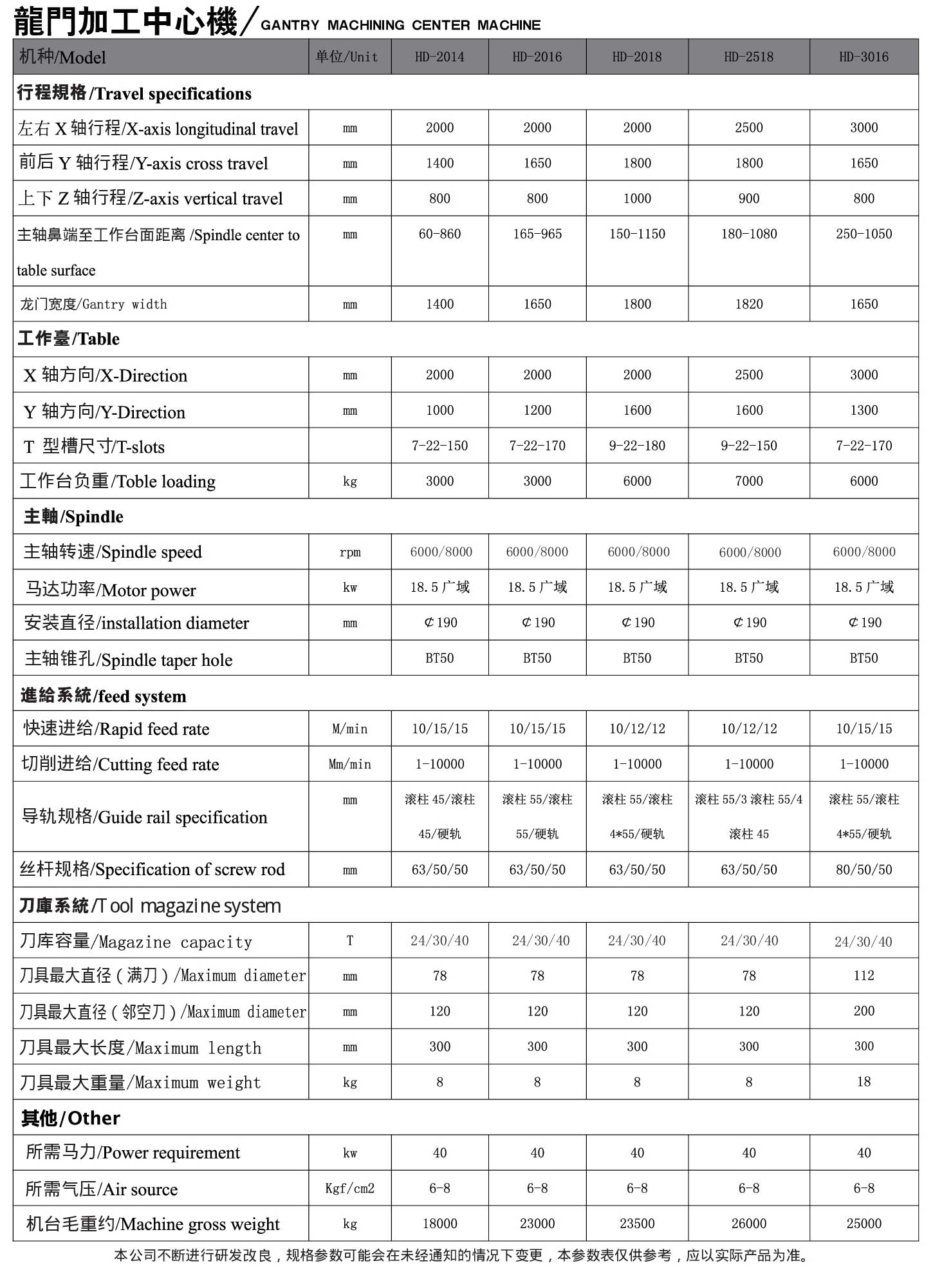 HD系统龙门加工中心为高精密零件加工与模具高速切削之专属设备,具备各项高速加工性能技术指标,为高速加工之利器。